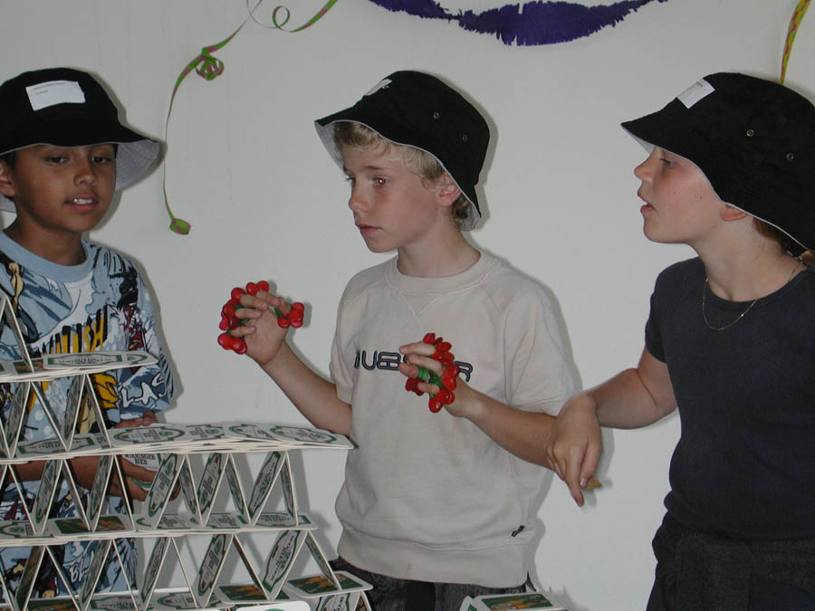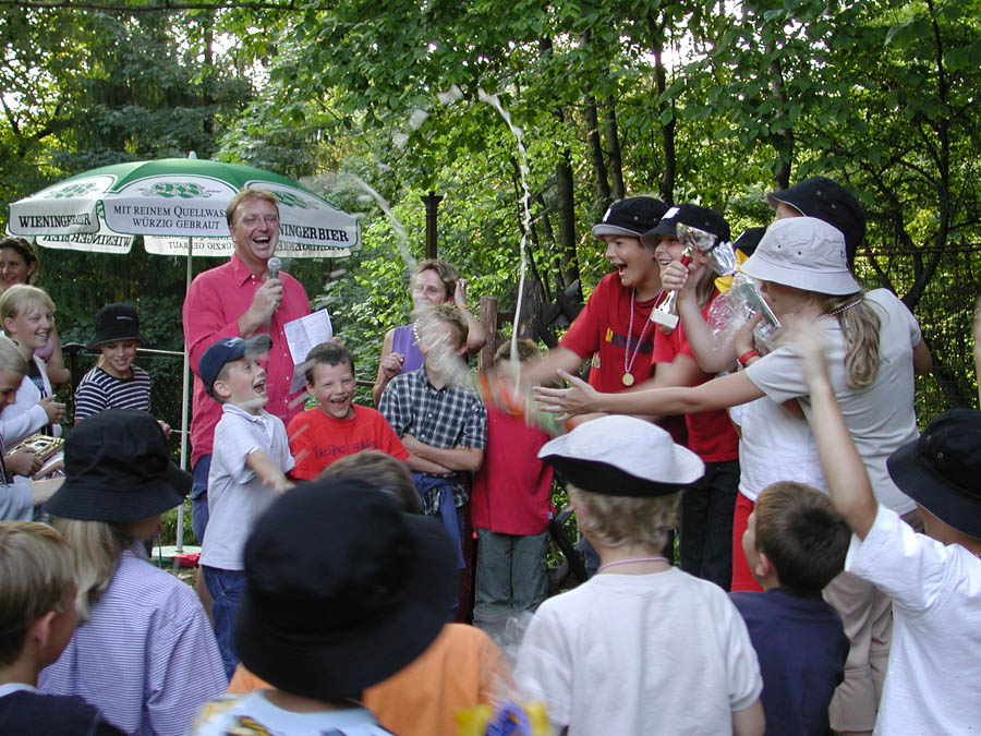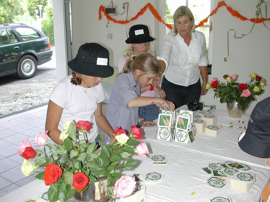 Die Eltern bereiteten eine Reihe Stationen vor, die in ihren Häusern, Wald und Wiese in Aigen verteilt waren. Diese Stationen durchliefen die Schüler nacheinander in kleinen Gruppen und bestanden dort Geschicklichkeitsaufgaben, Quizzfragen und andere Herausforderungen; nur einige der Stationen sind unten wiedergegeben. Nachher am Abend, stieg das Fest beim Aignerwirt zusammen mit allen Eltern, auch Großeltern, Direktor und anderen Lehrern, die in der Klasse unterrichtet hatten.