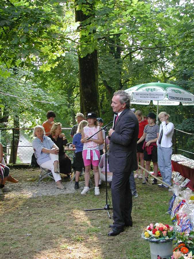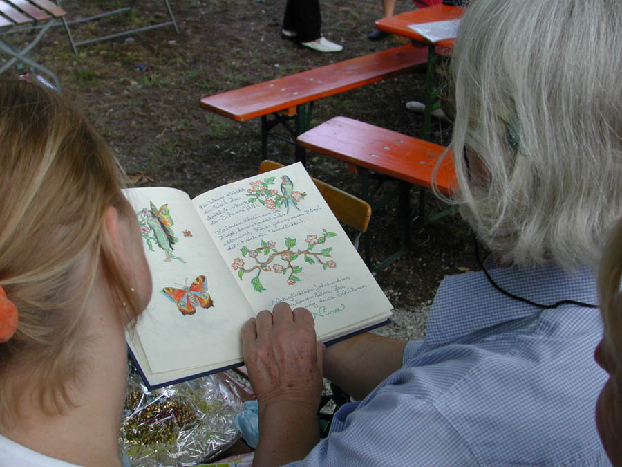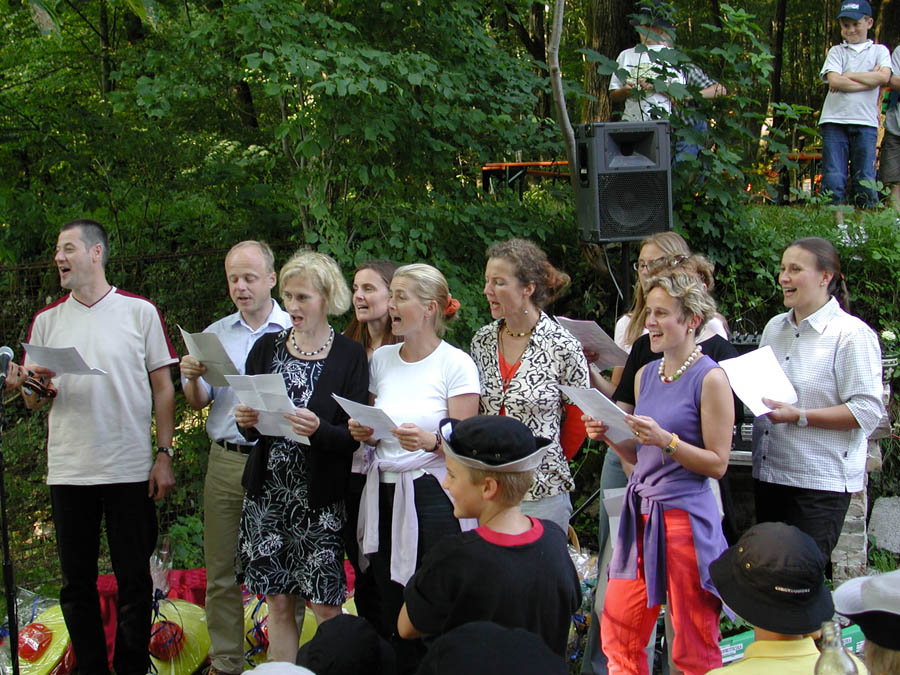 Hier ist Maria nur mehr am Rande zu sehen, sie hat ihre Arbeit getan: sie hat ihre Schüler in den vier Jahren zu einer lebensfrohen und leistungsfähigen Gruppe zusammengeschweisst. Die Eltern der Kinder waren in ihrer Rolle gestärkt und nutzten den gewonnenen Raum großartig, um die Kinder in ihre Mitte zu nehmen und ihnen dieses letzte gemeinsam Fest ihrer Volksschulzeit zu bereiten.