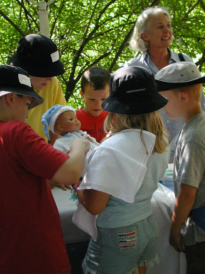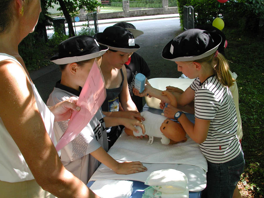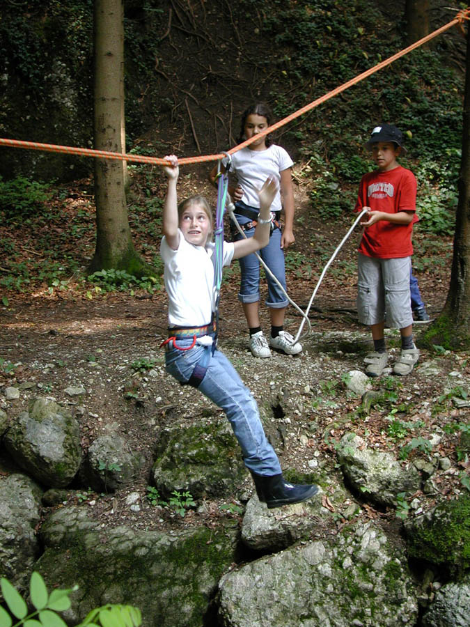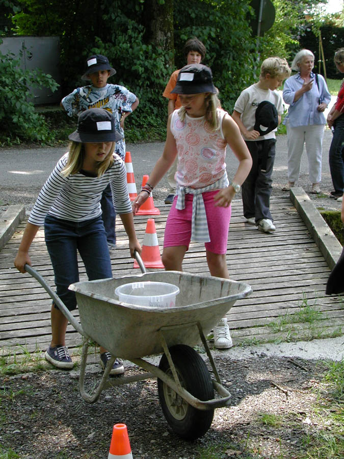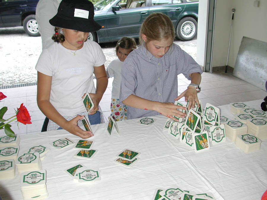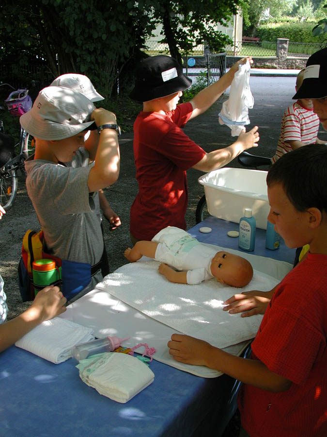 The parents prepared a series of stations in their houses, in the woods and meadows nearby. The kids passed through these stations in small groups, encountering quizzes, dexterity challenges and others; only a few of the stations are shown below.
