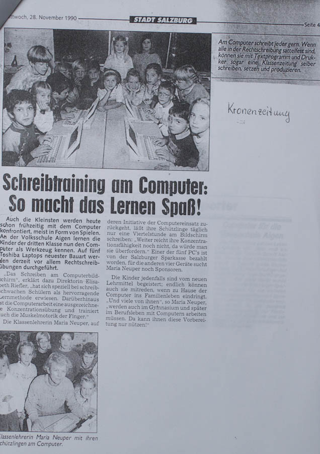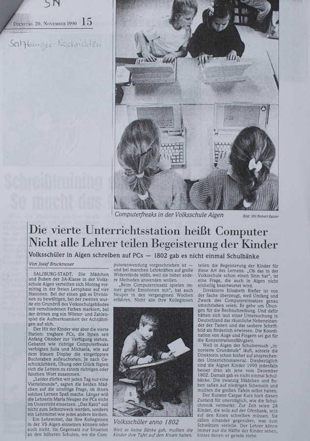 Using computers already in primary school caused excitement; newspapers and TV were interested, as shown by the reports (in German) below.